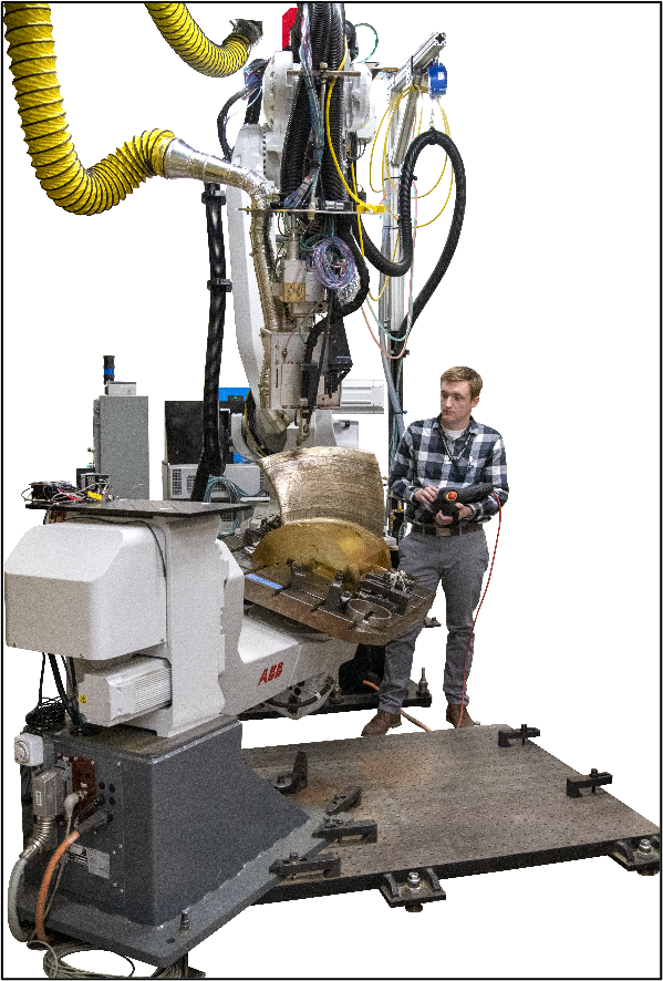 LAMAR (our Large Additive Manufacturing Articulating Robot) is ARL/PSU’s custom-engineered, large-format Directed Energy Deposition (DED) platform designed to accelerate advanced materials and manufacturing research. This next-generation system integrates high-rate metal deposition, real-time sensing, and intelligent process control into a single, flexible, mid-TRL environment—positioning it as a national asset for fundamental and applied R&D.